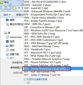 5.在導(dǎo)出界面格式選中psd,點擊“導(dǎo)出”,如圖:
