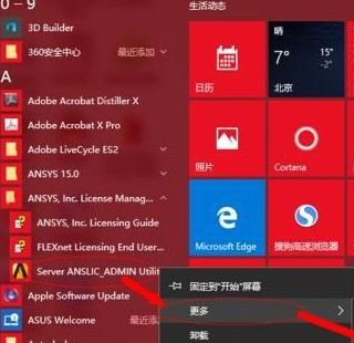 1、點擊Win10左下角開始菜單,找到ANSYS server,然后在ANSYS Server上右鍵選擇。
