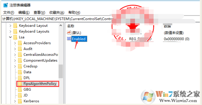瀏覽到HKEY_LOCAL_MACHINE\SYSTEM\CurrentControlSet\Control\Lsa\FipsAlgorithmPolicy,將Enabled的值改為0