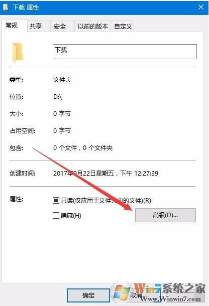 7、在打開的文件夾屬性窗口中,我們點(diǎn)擊“高級”按鈕