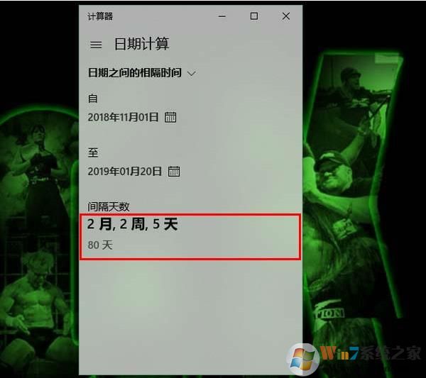 6、接著,以同樣的方法選好結(jié)束日期。這時,兩個日期之間的間隔時間就出現(xiàn)在頁面下方了。