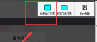 2、點(diǎn)擊【截圖】這個(gè)小按鈕后右上角會(huì)出現(xiàn)幾個(gè)選項(xiàng):截取整個(gè)頁面,截取可見范圍,我的截圖 ,如圖: