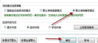 6、在瀏覽器選擇策略中,勾選【默認使用兼容模式】,如圖: