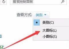 2、在打開的Windows10控制面板窗口中,我們點擊右上角的“查看方式”下拉按鈕,在彈出菜單中選擇“大圖標”菜單項,如圖: