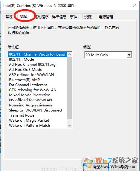 2. 右鍵單擊無線網(wǎng)卡,選擇屬性–切換到高級(jí)標(biāo)簽,這里有很多的高級(jí)參數(shù);