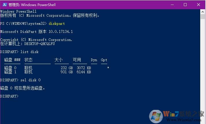 4、接下來我們選擇要操作的硬盤,輸入 sel disk 0 回車,如果那個多出來的分區(qū)在磁盤1上,則輸入 sel disk 1。