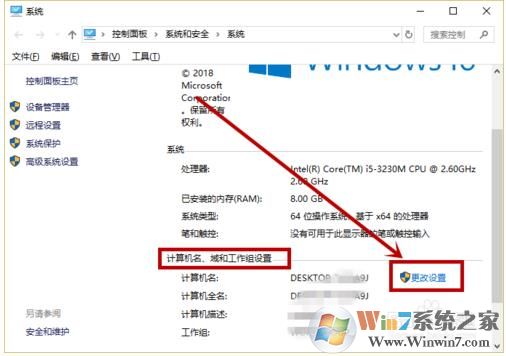 2、然后點(diǎn)擊計(jì)算機(jī)名右側(cè)的 【更改設(shè)置】;m.cncxm.com
