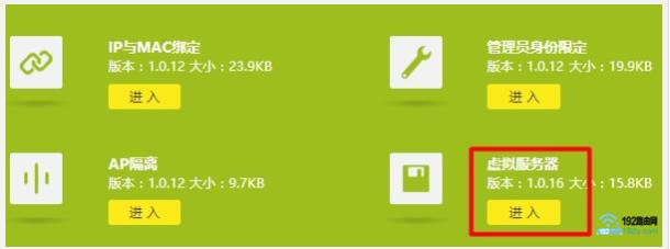 1、登錄到tplink路由器設置頁面后,點擊“應用管理”——>然后點擊“虛擬服務器”選項打開