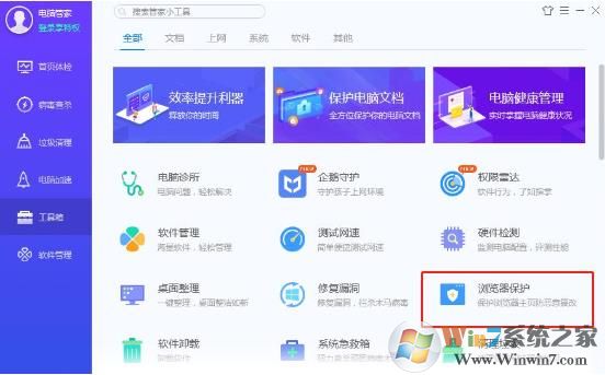 2、點(diǎn)開工具箱按鈕后,我們找到【瀏覽器保護(hù)】這一個(gè)功能。