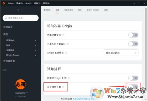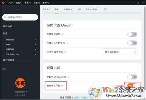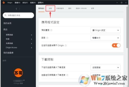 1、首先打開origin平臺并登錄,然后點擊左上角的"origin"按鈕,選擇"應(yīng)用程序設(shè)定",