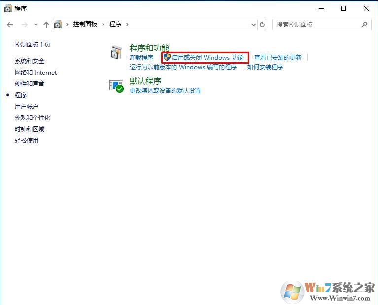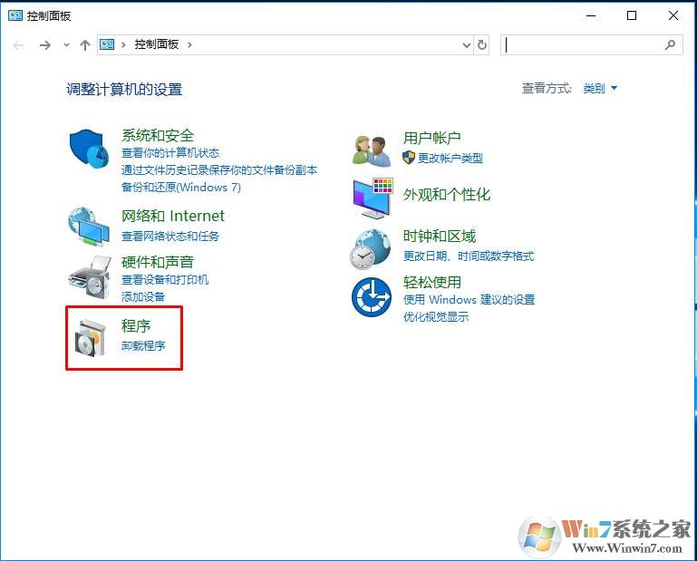 2、點(diǎn)擊程序選項(xiàng);Win10