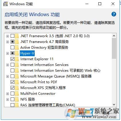 4、取消勾選Hyper-V 選項(xiàng),然后確定,我們就可以把Hyper-v功能關(guān)閉了。