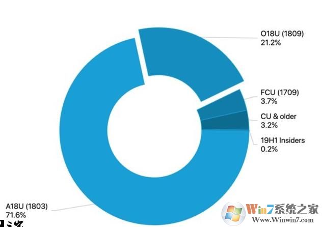 從上面的圖標可以看出,目前用戶使用數(shù)最多的還是18年四月更新也就是Win10 1803的版本,市場占有率為71.6%,而1809也就是十月更新版本的市場占有率為21.2%,此外更老舊的Windows 10版本占有率大約為6.9%,同時也有0.2%的消費者已經(jīng)使用19H1的開發(fā)者版本。