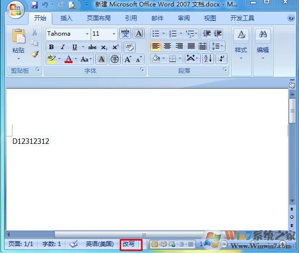 1、看下面Word底部狀態(tài)顯示“改寫”;