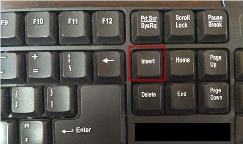 2、我們只要在鍵盤上找到insert或是INS鍵,按一下,就可以看到改寫變成了插入。