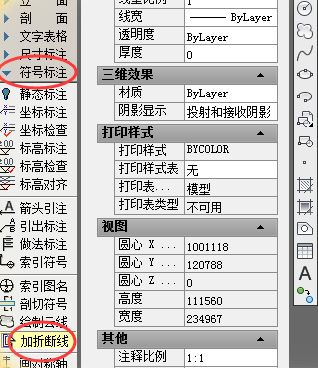 2.、接著我們點(diǎn)擊符號(hào)標(biāo)注下的加折斷線,如圖: