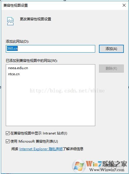 2、這 時(shí)出現(xiàn)在兼容性視圖設(shè)置,我們把需要操作的網(wǎng)站網(wǎng)址復(fù)制到下面的輸入框中就可以了,如輸入m.cncxm.com 點(diǎn)添加按鈕;