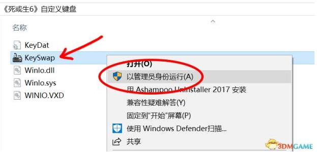 下載后解壓,如果是Win10 \Win8系統(tǒng)的話要在KeySwap.exe上按鼠標(biāo)右鍵,選擇“以管理員身份運行”。