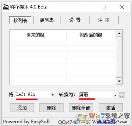 點擊左邊的輸入框,在下拉菜單里找到LeftWin;點擊右邊輸入框,在下拉菜單里找到屏蔽。點擊添加,激活后即可生效。