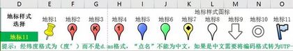 4、當坐標轉(zhuǎn)換完畢后我們將WGS84坐標系(經(jīng)緯度)復制到(Google Earth KML文件生成工具)KML表格中(我們這里講一下“Google Earth KML文件生成”工具的用途,它可以將控制點或其他點的經(jīng)緯度生成KML(google)文件,可以在Google Earth或奧維互動地圖中識別,Google Earth KML文件生成工具可以根據(jù)自己的要求選擇多種地標樣式)可選擇的地標樣式,如圖: