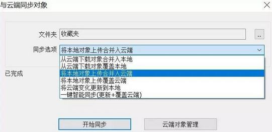 11、點擊頂部“用戶”>>>與云端同步對象>>>同步選項(選擇:將本地對象上傳合并入云端)>>>開始同步>>>開始同步>>>已完成