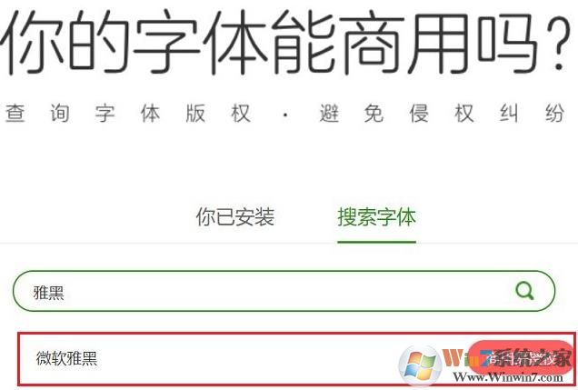 4、除了可以查電腦上已經(jīng)安裝的字體,也可以手動搜索其它字體查詢是否是免費的,還是需要商用授權(quán),如下圖所示。