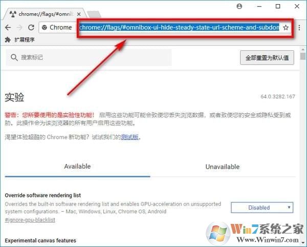 chrome://flags/#omnibox-ui-hide-steady-state-url-scheme-and-subdomains
