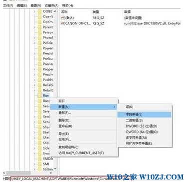 4、在注冊表中找到如下位置HKEY_LOCAL_MACHINE\SOFTWARE\Microsoft\Windows\CurrentVersion\Run,winwin7.com右鍵“Run”新建一個字符串類型的鍵值。