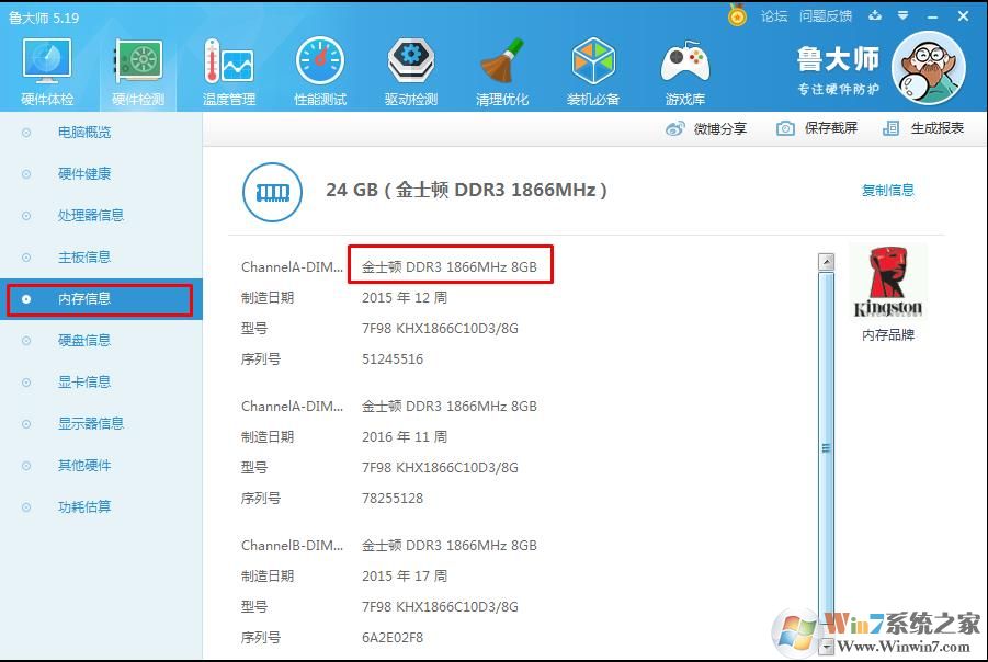 如上圖,我們可以看到是內(nèi)存品牌是金士頓的,型號是DDR3 頻率 1866的內(nèi)存條。