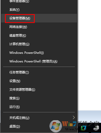 Win10系統(tǒng)打開設(shè)備管理器方法一和Win7一樣,還有一個新的方法就是WIN+X(或右鍵菜單開始菜單)這時主菜單中就有一個設(shè)備管理器了,如下圖
