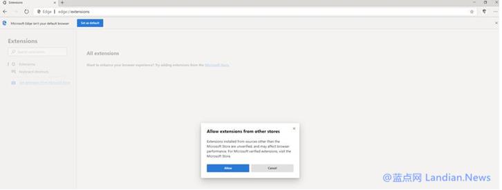2.微軟自己搭建Microsoft Edge 擴展程序庫供開發(fā)者提交和用戶下載,這個擴展程序庫以網頁形式提供無需商店。