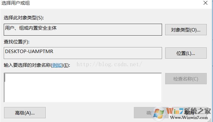 3、這時出現(xiàn)選擇用戶和組的界面,再點(diǎn)擊【高級】按鈕;