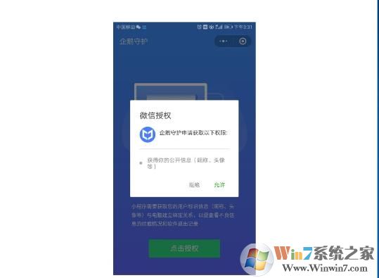 6、掃一掃之后出現(xiàn)以下界面,點擊授權(quán):