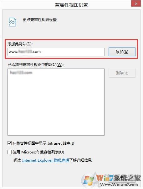 打開IE11瀏覽器中,"工具-兼容性視圖",在"添加此網(wǎng)站"處輸入視頻網(wǎng)站的地址,然后點(diǎn)擊"添加",重啟瀏覽器。