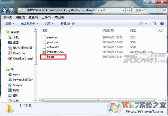 2、接下來我們要開始破解了,打開“C:\Windows\System32\drivers\etc”目錄,找到“hosts”