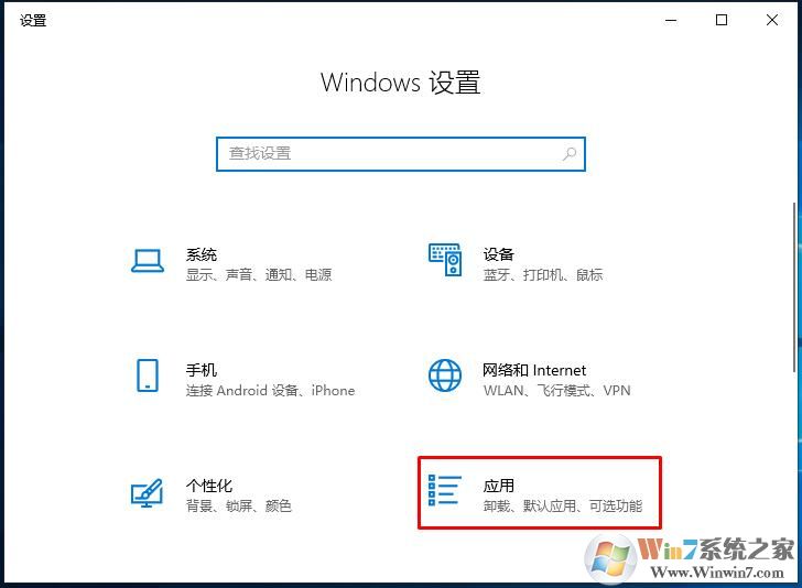 1、首先打開(kāi)開(kāi)始菜單—設(shè)置——【應(yīng)用】