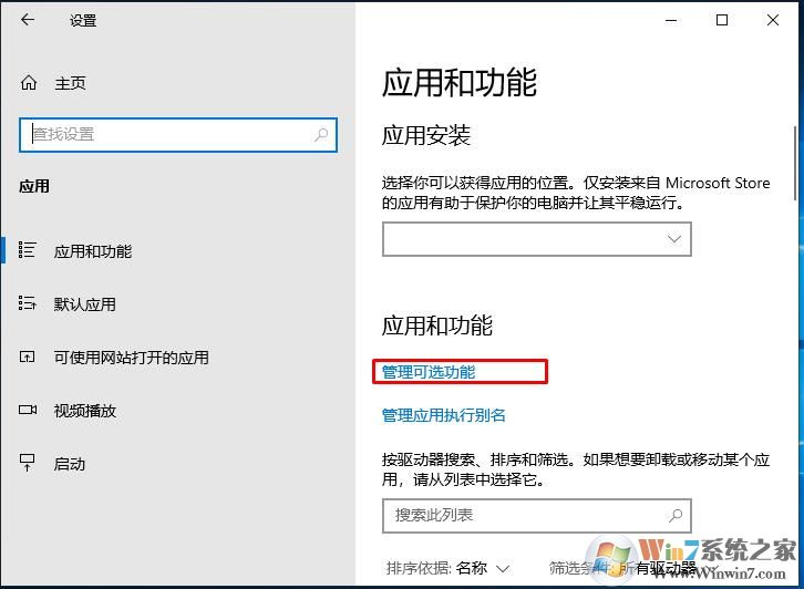 2、然后點(diǎn)擊管理可選應(yīng)用;