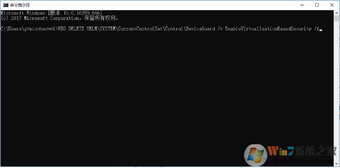 第四步,回到桌面點(diǎn)擊左下角“開始菜單”,搜索“命令提示符”,以管理員權(quán)限運(yùn)行。然后在彈出來的窗口內(nèi),用“Ctrl+V”黏貼以下代碼并回車運(yùn)行(代碼:REG DELETE HKLM\SYSTEM\CurrentControlSet\Control\DeviceGuard /v EnableVirtualizationBasedSecurity /f),運(yùn)行成功后,重啟電腦即可。