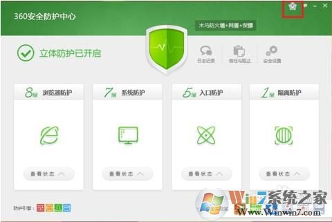 第二步,打開了如圖“360安全防護(hù)中心”,再點(diǎn)擊右上角的“核晶防護(hù)”圖標(biāo);