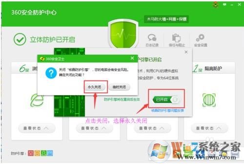 第三步,彈出如圖“Intel-VT核晶防護(hù)引擎”設(shè)置界面,點(diǎn)擊關(guān)閉按鈕,選擇永久關(guān)閉.