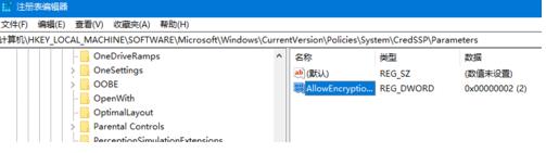 4、接著到Parameters項,右擊新建 DWORD(32)位值(D),文件名為 AllowEncryptionOracle 。值設置為2