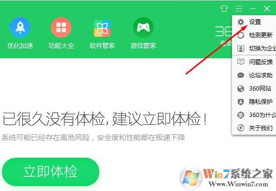 1、首先打開(kāi)360的設(shè)置,主界面右上角