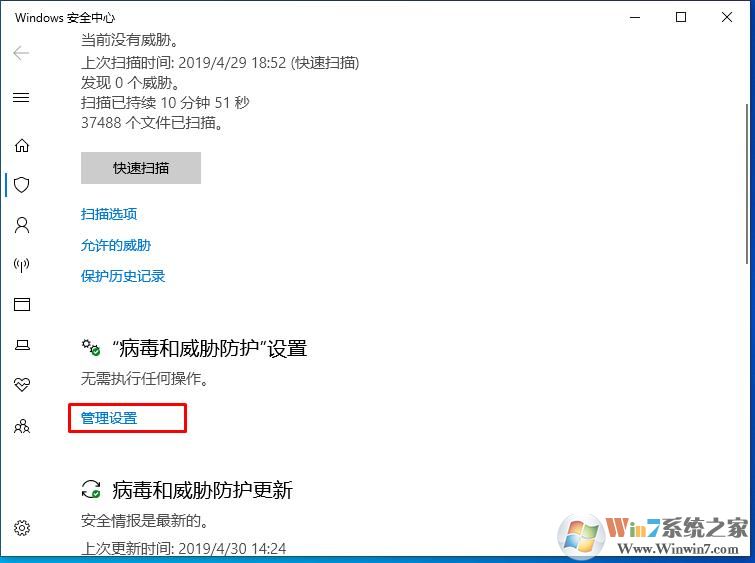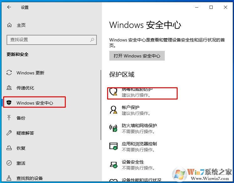 2、在Windows安全中心下,點(diǎn)擊 病毒和威脅防護(hù);