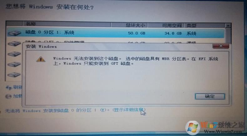 如果系統(tǒng)安裝光盤中包含了UEFI信息,啟動時可能會自動加載并進入UEFI模式, 因此便會出現(xiàn) “ windows無法安裝到這個磁盤,選中的磁盤具有MBR分區(qū)表,在EFI系統(tǒng)上, windows 只能安裝到GFT 磁盤 ” 的提示。