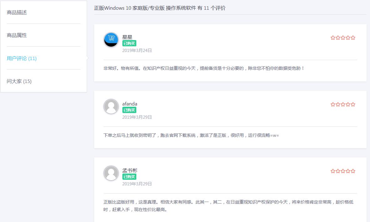購買提示:商城購買的為Windows10正版KEY,可以綁定微軟帳號,支持無限更換電腦永久激活!