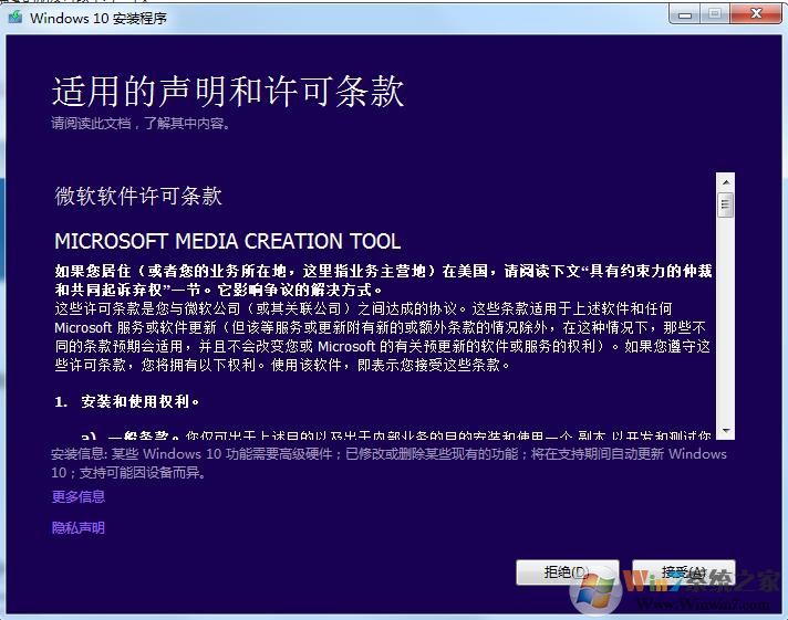 3、打開下載好的MediaCreationTool1809.exe 文件,接受許可。