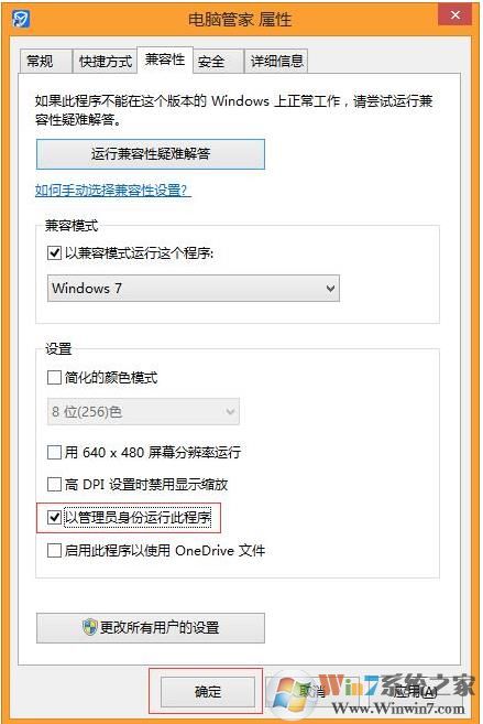 第四步:勾選以管理員身份運(yùn)行此程序,并點(diǎn)擊確定: