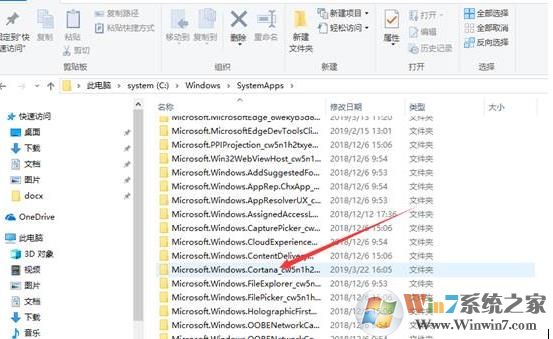 3、打開文件夾,找到文件“SearchUI.exe”,這就是Cortana小娜的主程序