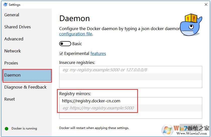 點(diǎn)擊Apply后會(huì)重啟Docker。