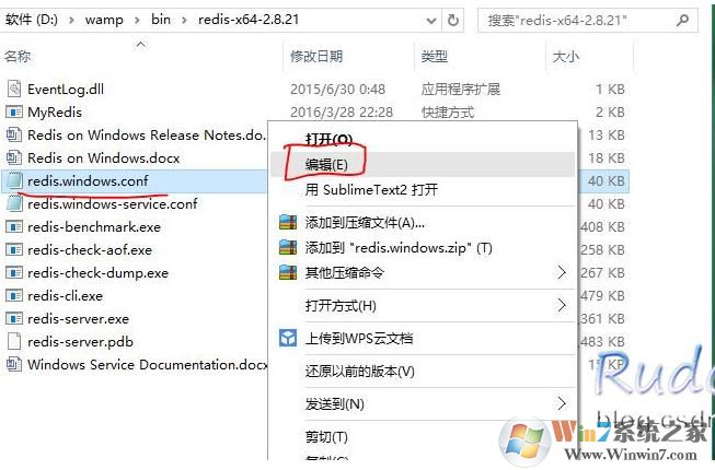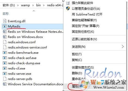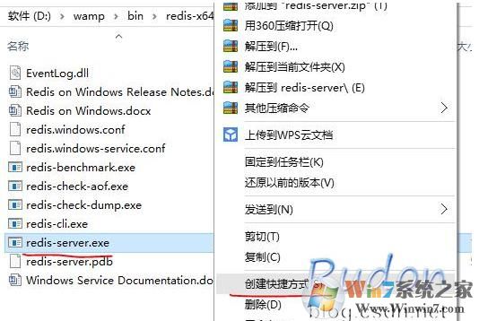 3、找到為redis-server.exe,右鍵創(chuàng)建快捷方式,并且改名為MyRedis